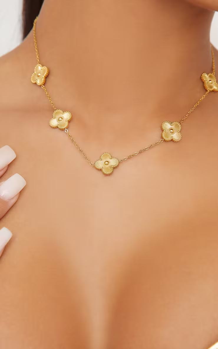 ✔ Gold-toned floral charms on fine chain