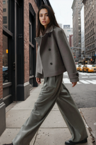 Meet the Camel City Jacket — structured, modern, and the kind of outerwear that makes every outfit look instantly refined. With its clean asymmetric closure, sculpted shoulders, cropped silhouette and signature high collar, it gives that effortless quiet-luxury energy girls love right now.